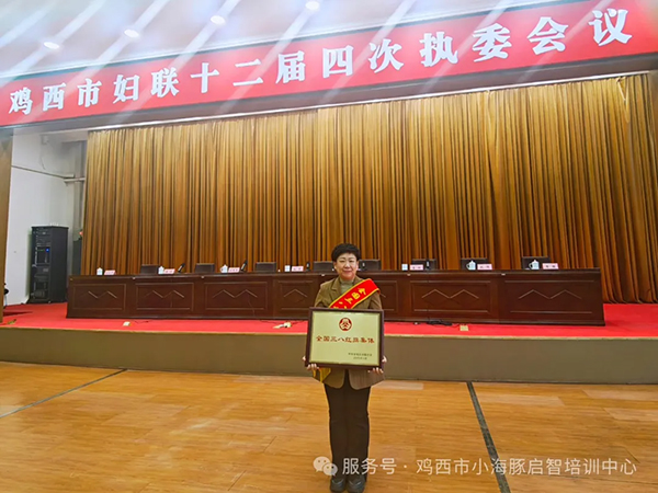 董永坤老师代表中心参加座谈及市妇联十二届四次执委会议,领取“全国三八红旗集体”奖牌、荣誉证书。